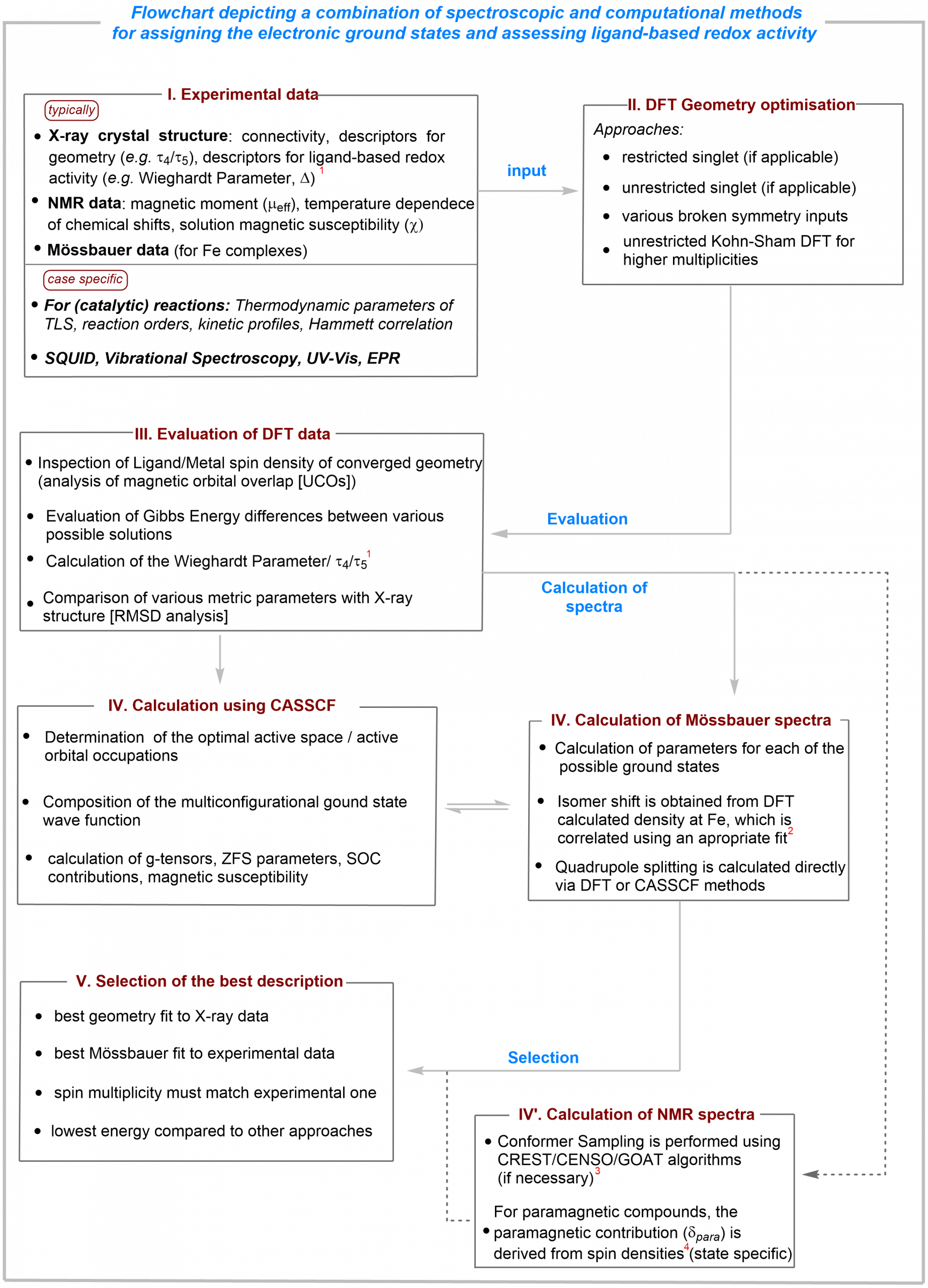 To take into account ligand-based redox activity, the Broken Symmetry ansatz is used.